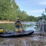 On our first day’s float, fellow FATC brothers Will Black and his son Drew worked streamers with good results from Drew’s Flycraft. I fished solo that first day letting my boat drift along while I hit slack water near banks and around logs, and under huge rock cliffs and other natural obstructions with poppers.