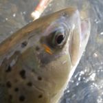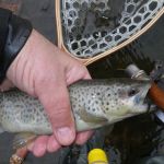 The two started up stream at the beginning of the three runs that are back to back and worked their way downstream to the Suicide Hill area. Yes, it was a FULL day of fishing for sure. We threw mohair leeches and woolybuggers in the beginning. Then switched to a little euro nymphing. Both techniques caught fish. Then we saw some browns taking insects in the film layer and went to attack them. Lou tied on a soft hackle with a Barr’s emerger trailer and did very well. He said he never fishes small flies but after his success he will do it more often.