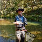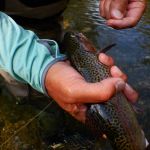 At lunch we swapped stories of productive tactics, so everyone was well equipped to catch fish in the afternoon. But, the fish were less enthusiastic than in the morning. Still, with a little perseverance we landed some nice fish and it picked up as the evening approached. For a while there, they couldn’t get enough ants and beetles. Then they turned their interest to mohair leeches, soft hackles, and a variety of other flies.