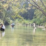 By the time we arrived, the sun was up and the temperature was rising. Several guys chose to wet wade. I have to admit, that looked pretty tempting to the rest of us. But, once we got into the water and stayed in the shade, it was a reasonably comfortable day despite the late summer heat.