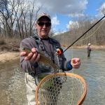 On Tuesday, Kenny was graduating another member from the Winter fly fishing class – Mark Robert. As on Monday, the fishing was tough. Everyone was having a tough day including others that were fishing Montauk. The afternoon again proved better fishing for all. The word is the water temperatures need to get a little warmer for the trout to “turn on”. Just a few more warmer days! Mark did great as he went through all techniques but had to nymph fish in the afternoon as the trout didn’t want to rise to the surface. Unfortunately, many of the guys that spent two days on the water had to get home early and Mark missed the fellowship dinner. Mark, we will make that up to you in future trips!