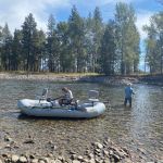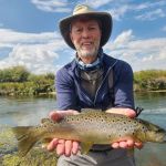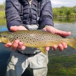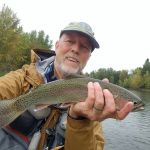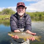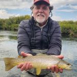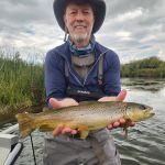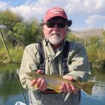 Our next guided trip was Sept 16th with the same fly shop. However, Tim and I were resolute that we did not want to fish the Madison again and were prepared to cancel the trip if that was our only choice. The previous trip was fun, but we didn’t think it was worth doing again. When we conveyed this at the fly shop that morning, the fly shop made some guide changes and offered to take us on one of the open parts of the Beaverhead. However, we (the guide) would have to drag the boat the first mile. We agreed. We were paired up with a young guide, Joseph Lema. Joseph was a great kid. He was a recent graduate of Western Montana University in Dillon MT, a kicker on the university’s football team, and only in his second year of guiding. But, the Beaverhead was his home water, and it showed. The first mile wasn’t very fishable, but when the flow of Poindexter Slough joined the Beaverhead, we were in business. Low flows in the prior weeks had left this stretch of the river untouched by other fishers. We found big browns stacked up at the beginning of deep river bends. Dead drifting midges and especially the BWO green perdigon with a flash back was the key. We each caught three browns 17-20 inches not to mention other big ones that got away. Some smaller fish also made it to the net that day. We also had a thrill when anchored on the inside bend of a very slow-moving section of the river when our guide shouted to Tim in front of the boat to maintain his drift because a huge wake had formed and was heading straight toward his fly…Tim, who had the benefit of polarized glasses (guide forgot his) and a standing position soon saw one of the largest beavers he had ever seen, bearing down on his point fly several feet below the surface. Fortunately, the beaver did not take the fly. If he had, that would have been one wild ride.