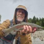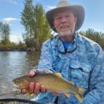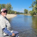 For our last day, we floated the Bitterroot River with guide Sean O’Brien, owner of Osprey Outfitters. The previous day’s thunderstorm north of us blew out the Blackfoot River so everyone came south to the Bitterroot River. Yep, it was crowded. Sean found us a launch site with few boats and we saw only one other party on the river that day. The day started great as Jim’s first fish was a big cut-bow that grabbed his hopper. But then things started to slow down. Tim later landed a fat rainbow and a couple other fish, but I have to say the fishing was pretty slow the rest of the day. Sean worked hard. He continuously told us where to make each cast as he positioned the raft so we could make those casts. He tied on countless fly combinations. The fish just weren’t playing along that day. Nevertheless, we enjoyed a beautiful day floating one of the prettiest rivers we’ve ever seen. There will be a next time!
