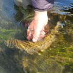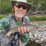 On another day, Tim and I fully explored the upper Ruby River. We started fishing at Sweetwater Creek bridge. Nearly all the upper Ruby runs through private land, so access is at bridge crossings. You must go directly to the river and stay below the highwater mark. Again, the low flows were a challenge. Yet, we hooked up with browns, rainbows and whitefish before we had to exit the water as a major thunderstorm was moving in on us. During the rain, we drove as far up the river as possible to check out fishing spots for future trips.