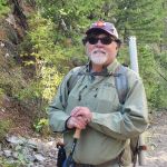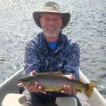 Our guide Joseph Lema highly recommended we fish Lake Agnes for trout and grayling. So, on Sept 17th, using Google Maps we found our way to the trailhead into Lake Agnes. Note to self: Never trust Google Maps when navigating remote areas. We found the road to the trailhead very perilous. It was a long, rough, rocky, dirt road. At one point it required we navigate a long, one-lane stretch that dropped precipitously along the edge hundreds of feet down to Brown Lake. We just hoped not to meet another car coming the other way as there was no place for cars to pass. The drive was just the beginning of the adventure. From the trailhead we hiked 1.7 miles that felt like we were climbing straight up. Well, we almost were. We gained more than 1,000 feet on the steep, rocky trail. After 1½ hours we arrived. It was a beautiful and very large lake. Since we didn’t reach it until early afternoon, it seemed like the best thing to do first was to eat lunch. We watched several other fishers in the distance. No one was catching. We only had a couple hours to fish. We wanted to leave plenty of time to make it back to the car before evening here in the middle of bear country. We tried lots of presentations. In the end it was the dry fly, a royal wolf parachute, that tricked a few graylings.
