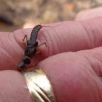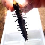 The first was a large, Stonefly. Probably almost 2 inches long. Not huge as far as Stoneflys go, but the biggest we have ever found on our creeks. The second was something we have never found, and we had 2 of them in one net. These were a couple of Hellgrammites(Dobsonflys). In adult form, Dobsonflys can grow up to a wingspan of 7″. In larval form, they grow fairly large as well and have a serious attitude. As you can see in the pictures, they have large mandibles at the head, and they are not afraid to use them. They quickly grasped onto anything we put in front of them. We made a point to keep our fingers at a safe distance. A very cool find.