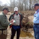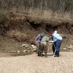 FATC member Mike Bisaga, Mike Chambers, Bill Lowry, Miles Meyer, and Don Varner headed out to Calvey Creek in Robertville State Park on very pleasant Saturnday morning. The guys met at our usual parking place in the State Park campground, gathered our stuff, and headed out on the cross country journey to reach our creek location. The underbrush has not grown in yet, so the hike was not too bad. At least going down the hill…