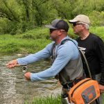Instead of going over every day of the retreat let’s just talk about the flow of the week. Each morning the gang met for breakfast at 7:30am and had an Altar retreat session afterwards. Around 9:30am we would gather to fly fish in the Driftless area. The Altar staff and Jason Randall selected locations to give the group the best chance of catching fish. The Driftless area contains brown trout and brook trout (yes, a few brookies were caught) but mostly brown trout were caught. The browns are not huge although you can find a “big boy” once in a while. Most of the browns caught on this trip averaged between eight inches and fourteen inches. The group met for lunch on most days – breaking bread together. Everyday Jason Randall gave valuable fly-fishing instruction from Euro-nymphing, dry-dropper, and casting.