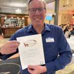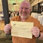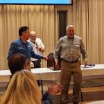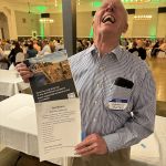 The evening started with picking up name tags and the ladies receiving roses. Many bought their raffle tickets early and checked out the raffle gifts provided by donors to our dinner. Next were introductions of guests, a few videos of our charities and a dinner prayer by John Muckerman. Dinner included drinks (of course we had an open bar), rolls, salad, chicken or beef, glazed carrots, Italian potatoes, and a huge brownie for dessert. Then during dessert, we watched a few more videos of our charities, passed out our FATC awards, the Miles Meyer tournament plaque, and our gift for out going Member at Large, Matt McClure. This year’s “Lew Smith Spirit of Fly Fishing” award went to Al Harper. And our “Bob Chott Servant Heart’s” award was won by Paul Jacoby for his dedicated work as our Ronald McDonald House representative.