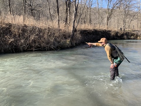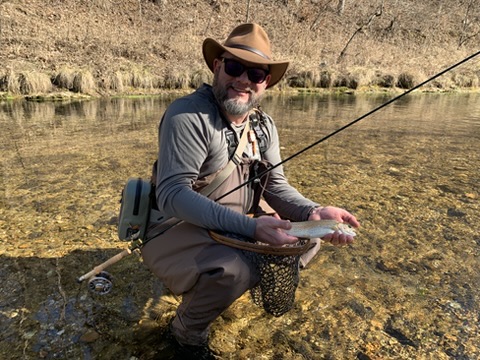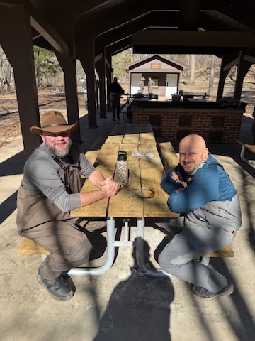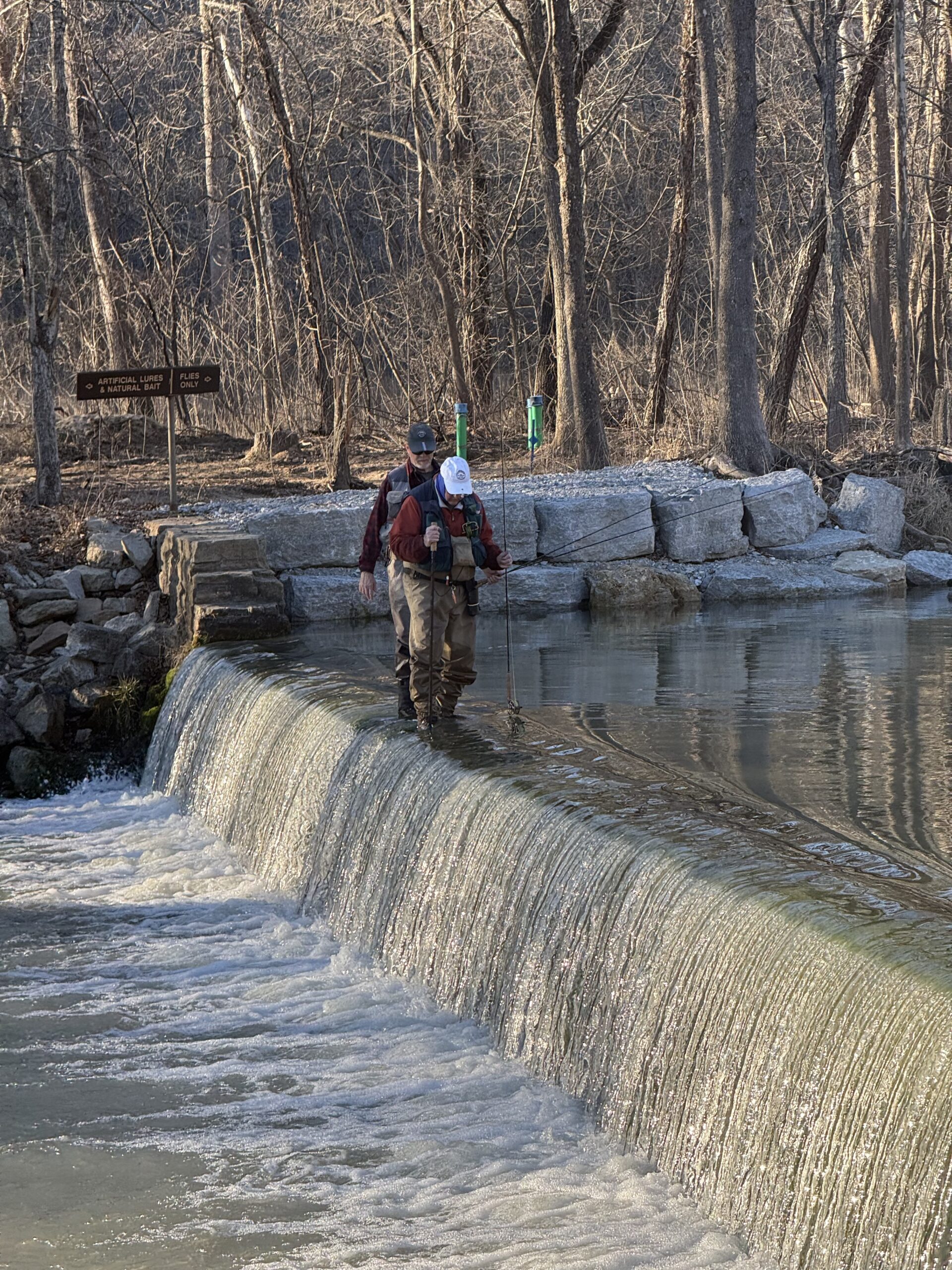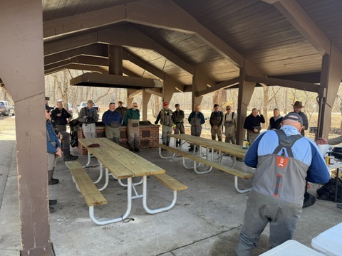 After a year hiatus due to flooding at Montauk State Park, the 2026 Miles Meyer Memorial Fly-Fishing Tournament took place on what turned out to be a beautiful day in Missouri. After the FATC had to cancel their first attempt at the tournament on January 26th due to freezing temperatures, we hit the jackpot on a day the temperatures reached 70 degrees, and the park was essentially empty for the last day of catch and release fishing. So, twenty-one (21) FATC members signed up for the chance to get their name on the coveted tournament plaque. This was the “largest” number of participants in the tournament’s history.