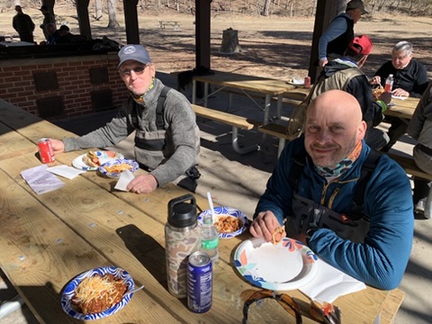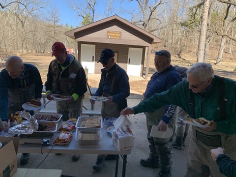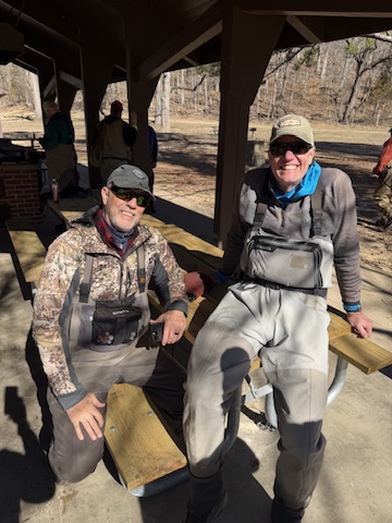 The majority of the tournament’s participants arrived around 8:30am and suited up with their gear to fish the practice round. The practice round allows all to observe what might or might not work for the afternoon tournament. At 11am everyone gathered up to talk strategy and enjoy lunch of hot dogs, chili, chips, dessert and drink donated by the FATC. Big shout out to Mike Bisaga who prepared the lunch for all. Thanks Mike!!