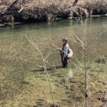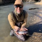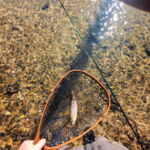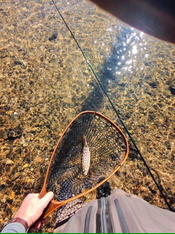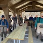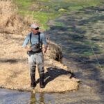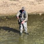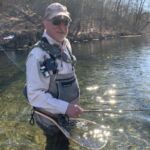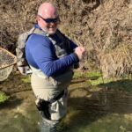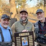 All participants gathered again around 4:15pm to announce the scores/catches for the tournament. Many had anywhere from 3 – 4 trout but once we got into the higher numbers the participants dwindled. A shout out to Sid Aslin who did outstanding considering he wasn’t allowed to go into the water. Second place went to Jim Bingley who netted 12 trout. This year’s Miles Meyer Tournament champion goes to Chris Beahm who blew the competition away with 19 trout in the net. I happened to watch Chris catch one of his trout and I figured out why he won by so much. His technique, ESN, was impeccable and very precise. He says he used small flies in the beginning of the tournament and then went to larger flies – like leeches – towards the late afternoon. On this day Chris tied the all-time tournament record of 19 trout held by Rick Doerr in 2022.
