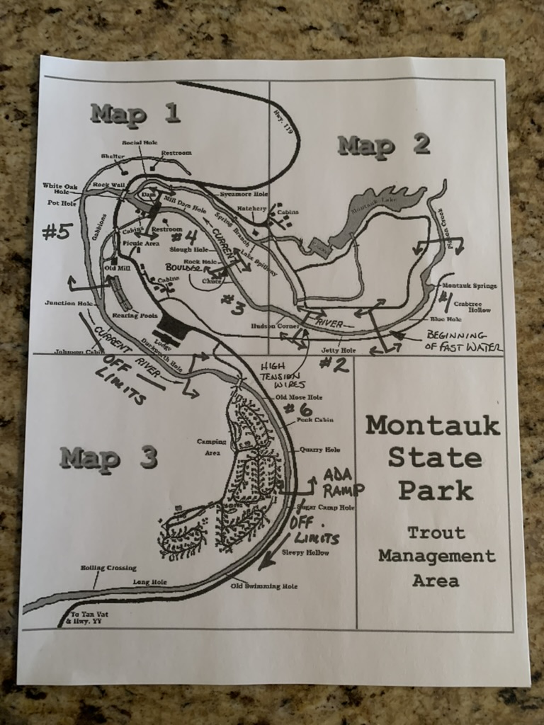 Once lunch was finished, Kenny Klimes read the rules of the tournament, passed out the maps of the “beats” where each fly fisher was only allowed to fish and everyone pulled their “beat” locations from a “hat”. There was one new twist this year. Everyone pulled out a number with their “beat” location except one participant got the coveted “A” which meant he could fish anywhere in the park. That honor went to Jim Craig who was the last one to pull his number! I guess it pays to go last!?