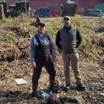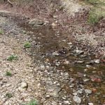 FATC participants were myself (Harold Bates), Bob Hassett, Ken Welter, Chris Roth, Bill Grelle, Don Varner, Dave Rodecap, Mike Chambers, and three new members, Joe Ackerman, Mitch Brewbaker and Brian Collins. With two sites to test and a good number of men to help, we split into two groups. Mike Chambers led the team at the highway location. I led the team at the ball fields. The water level at both locations was very low. At the Pond ball fields we found weak riffles but not many invertebrates, producing a score of 16 which is a “fair” rating. Mike Chambers and company at the highway creek location had a higher score of 20 for the invertebrates, which is a “good” rating. Other tests at both locations included water flow, oxygen, and nitrate levels, as well as a description of the surrounding land. The weather for the day started cold at 8:30 a.m. and ended up sunny and mild.