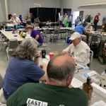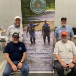 Our fellowship headed to Clinton, MO on Friday, April 12th for the Tri-Lakes Fly fishing Expo. We attended last year and had to go back to this impressive event. Dan Staggenborg, Brett “Gabby” Heath, Steve Baker, and Kenny Klimes jumped on the opportunity to tie flies for the Expo. We checked into our hotel around 3:30pm and went straight to the Benson Convention Center to set up our booth. The Tri-Lakes club hosted a fish fry for us with fresh fish that their club caught earlier in the year. Great dinner with all the fixings to go with the fish.
