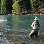 One other thing to think about besides rod position when fighting a big fish is rod angle. Keeping your rod low or the 45-degree position putting side pressure on the fish from a position perpendicular or downstream of the fish is preferable. This will put increased pressure on the fish by forcing the fish to constantly fight the rod, drag, and current. This will wear the fish out quicker and it puts the angler in a position that keeps pressure on the hook going into the fish. When fighting a fish from the upstream angle, with the fish facing into the current, the angler is unnecessarily putting extra pressure on the hook by holding the fish into the current while allowing the fish to utilize the river current against the angler with just a head shake.