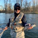Matt, Paul, and Kenny stayed inside the park. It was extra instruction for Paul as Kenny set his rod on the shoreline to help Paul. Paul worked on his casting and dead drifting and by the end of the day he was doing surprisingly well. Just shows that practice makes perfect. He missed a few and brought in a couple to the net. Matt stayed in the park and said it was crowded throughout. He also brought a few to the net. Kenny did well by euro-nymphing and using a new fly “he invented” called the “Hair of the Dog”. He used the fur of his Son’s dog, Gilly, to tie several of these “special flies”. The fly is tied similar to the Walt’s worm fly – YES, IT’S ON OUR WEBSITE! He had about eight trout in the net with this fly and technique.