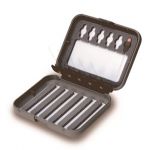It’s called the C&F Design CF-201 fly box. It’s a fly box that contains micro slit foam to hold your tiny flies but also six “threaders” that help you thread your tiny flies before you get on the water. Slide your fly onto the threader, run your tippet through the threader and when you’re ready for the fly it’s already threaded on the tippet. The cost runs in the $40 range. There is a small threader box for small flies – sizes 14-20 and a midge box that threads flies sizes 18-26.