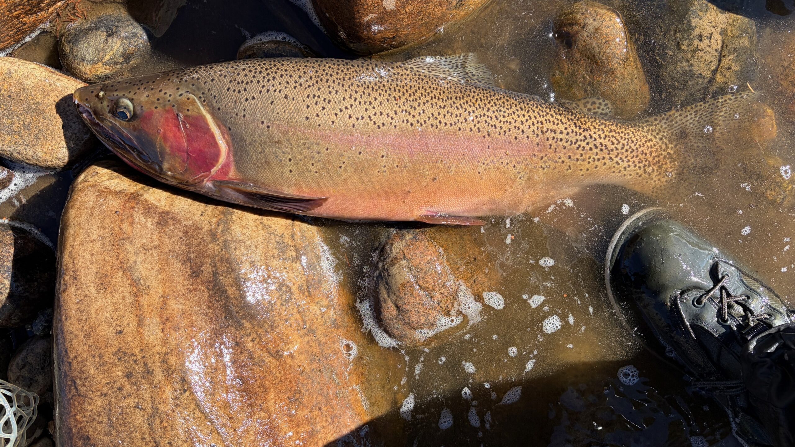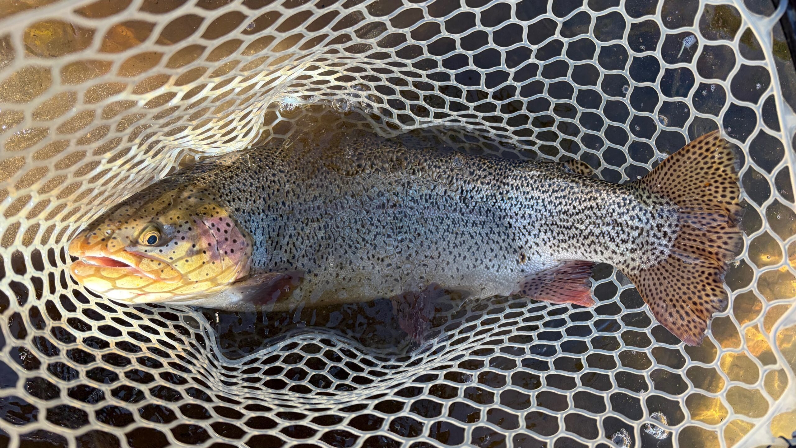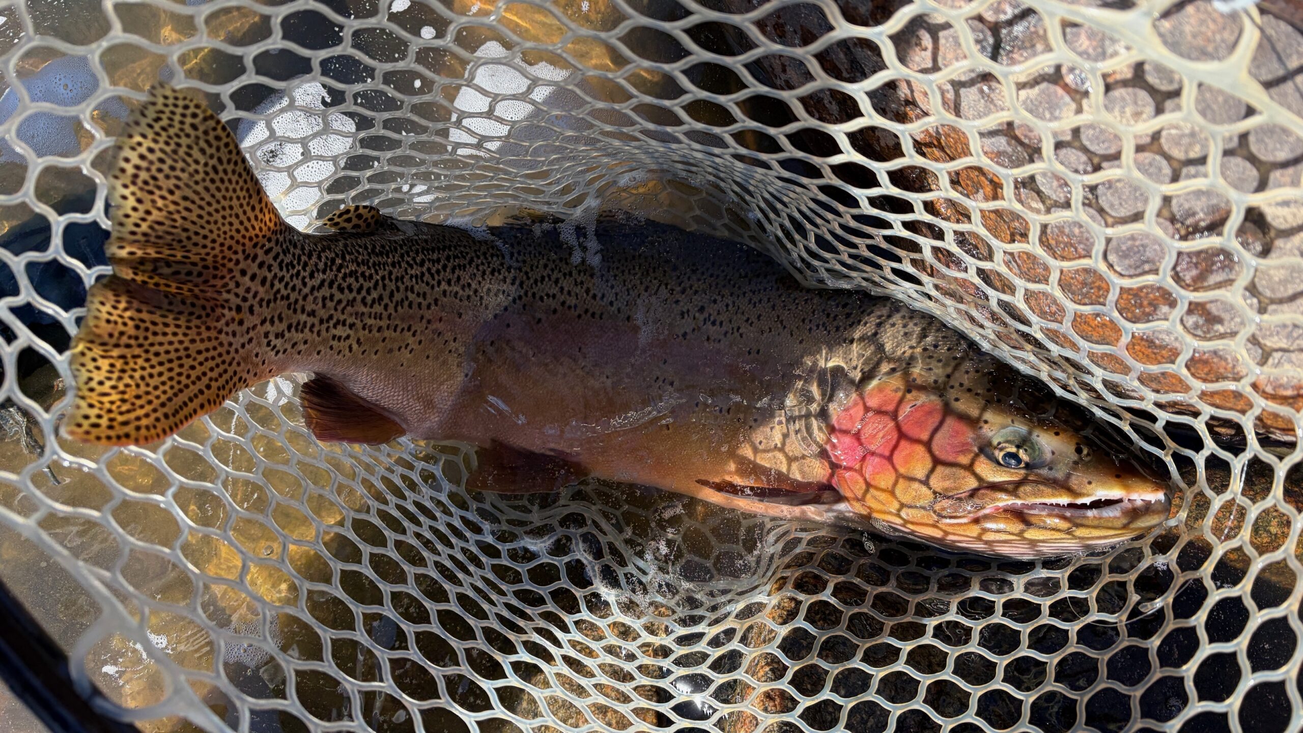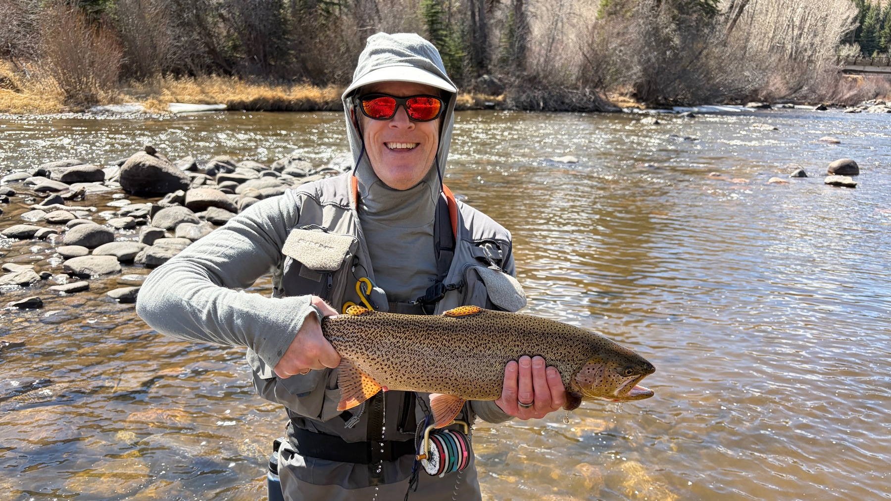 On recent back-to-back Thursdays, headed out to a familiar stretch of the Blue River since it had definitely been a while. I’ve been on a recent “streamer kick” lately (ok…maybe for the last year), and decided to leave my favorite olive over white craft fur streamer on the line. I initially picked up a couple of nice, typical 12″-13″ browns and rainbows out of my favorite deep run when, 20 minutes later, got into a fight with a fish the likes of which got my heart racing, reigniting the caffeine had earlier! A few casts prior had seen a large trout pursue but not take my streamer, so simply changed my stream side body position and casting angle to offer him a more enticing opportunity. “Boom…found him!” My 10′ 4wt Orvis Recon did its part, and I eventually maneuvered the 26 male cutthroat into my large-yet-seemingly not large enough net! Over the last few years of visiting this stretch, I had always believed there was a large dominant fish in this run, and this time I had found him! I wisely didn’t attempt one of my usual selfies with such a large fish, but gently captured it’s beauty laid out before releasing him seriously contemplated leaving for home after this because, what more could possibly expect? Then realizing I would be violating one of my personal rules (fishing time MUST exceed total drivinime, AND that my sanity walde guestioned by my wife, decided to stay. made a few more casts into the run as the adrenaline wore off, and realizing this fish must have dominated there, termoved river teetsofTyewater. A few cast in again latched into an even stronger fighting fish, a 27″ female cutthroat that took me downriver in pursuit. After dropping my net at least 3 times and thinking I was probably going to lose the fight, I finally managed to land her (again awkwardly) into my net….Wow! I thought, “why is no one else here to enjoy this with me?” A few pictures and release video later, I continued upriver to explore more water. As the day wore on and my wrist finally stopped aching, walked back to the initial run of the day to see if could find any fish brave enough to move in on the run that the male dominated earlier. Incredibly, I found a 21″ rainbow that took a liking to my same craft fur streamer I had yet to change out! After meeting my leave” cnteria, exhausted at the 5- hour point, and giving glory to God for one of the best fly fishing days I’ve ever had in Colorado, I left for home. On the 2-hour ride back couldn’t figure out what had done right! These were not your typical, public water fish…certainly not the typical mid-teen varieties had caught here before. had a hunch and, after sharing my pictures (ok…taunting with them!) and bouncing my thoughts off a very good friend who is also an avid fly fisherman, we decided these must have been lake fish that had moved upriver to spawn (rainbows, cutthroats, and cutbows in spring). Our recent warm air temps and near perfect water temps (mid 40’s warming to low 50’s) must have turned on the fish to begin the spawning run