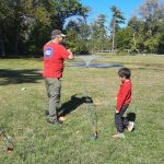 The volunteers would greet the kids and their parents and discuss the important rules for safety and conservation. I’d like to say that they were all paying attention but their eyes were focused on the fly rods and what they would be doing next. Kenny, I’d like to think that teaching your FATC students how to cast a fly rod is at least a little easier than teaching a 5-8 year old. Some of the kids would easily get the hang of it, but once they figured out that they could actually catch those felt fish that was all they would focus on. We even had some little sisters and brothers that wanted in on the action. As usual the reward for helping these young boys and girls is the looks of excitement on their faces. I would guess that all the volunteers enjoyed it as much as I did. We were all blessed with perfect weather and the fellowship and rewards of community service. If you haven’t been involved with any of our community service events you don’t know what you’re missing !