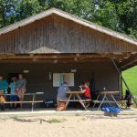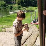 Another requirement is fly casting. Scouts need to be able to cast 30 feet and perform a roll cast.  Mike took this potion and worked with the kids, 3 at a time. All the Scouts picked up the casting very well and were successfully casting their flies out into the lake in no time.