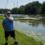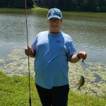 The final requirement is to catch a fish on a fly rod.  Harold took on this task.  He worked with Scouts lakeside and provided additional instruction on casting and playing fish. It was very hot and the fish were not cooperating, however, fish were caught and everyone really enjoyed the day.