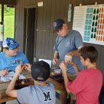 One of the Fly Fishing merit badge requirements is to tie 2 flies.  Steve Baker took this on and worked with the Scouts to get that done. He did a great job working with the youth and all Scouts successfully completed that requirement.