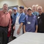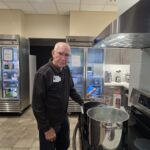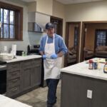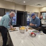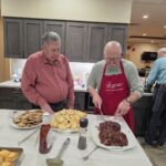 Since this was my first time as lead, I arrived earlier than normal to get the kitchen in order, find all the right pots and pans, and get water on the stove. Next was arranging all the food I had purchased the previous day to be certain I did not forget anything, my big fear. Paul indicated he would come early to make sure I was on track. He didn’t disappoint and arrived about 20 minutes later. We jumped right in and began prepping. John Steuterman arrived next and, as a second timer, knew exactly what needed to be done, and he tackled the potatoes.