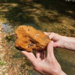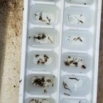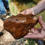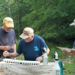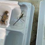 Steve Baker, Ken Welter, Dave Rodecap, Al Blair, and myself, Harold Bates met at the statue at Babler State Park at 8:30 a.m. We found ourselves looking for the path that would take us to Bonhomme Creek off Highway BA. The undergrowth was thick and the path which in the past was clearly visible was now overgrown and hard to find. Ken ( Daniel Boone) Welter finally found the overgrown path, and we followed him with the equipment to Bonhomme Creek. Drought conditions were evident at the creek, very low flow but we still found riffles. The kick net was brought out and the FatC guys started dancing in the water to bring the bugs ( macroinvertebrates ) out of their hiding places into the net. We used the kick net three times to gather the aquatic insects. The invertebrates were plentiful. We then started picking and sorting. We identified stone flies, caddis, sow bugs, mayflies, snails, fish, crawfish and aquatic worms, We filled the water trays with the aquatic specimens – giving all of us a look at what lives in the rocks underwater. The selection of aquatic insects netted a score of 30 – a score of 23 is excellent. Chemical tests for nitrates and dissolved oxygen scored excellent for this creek. Although the water flow was slow, the creek water was clear. Last thing to be done was a visual survey. The creek and creek bank were in very good shape, hardly any trash and there was very little moss in the creek. While pulling up cobblestones from the creek bottom we found several encased caddis on the bottom of every stone pulled up. None of us had ever seen them before; it was just something Kenny talked about in class and showed pictures on the screen. All of us got a big kick out of seeing them. This brought things to a close, equipment packed, and a job well done for the volunteers.