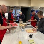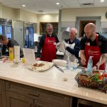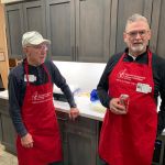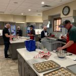 Six days later the FATC guys in St Louis area met to feed the RMH at Mercy hospital with their famous meat loaf meal. To watch these guys in action was amazing. They have this down – meat Loaf, mashed potatoes/gravy, green beans w/bacon, rolls, chocolate chip cookies and more. The eight guys hit the ground running at 4:30pm and dinner was served exactly at 6pm. It was an awesome sight to see all eight guys working together in harmony. The stoves were cooking, and the ovens were baking. And without missing a beat as soon as the families started eating the cleanup began. Paul Jacoby’s team of head chef Mike Bisaga, Christopher Beahm, Doug Smedley, Denny Garner, Don McCain, Harold Bates, and Kenny Klimes were running on all cylinders. The FATC in St Louis have been doing this for about four years now and they have it down. The FATC-SWMO will get it down and we will have two locations that serve the families staying at the RMH.