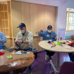 we were able to set up for tying colorful feathers on safety pins. The patients were