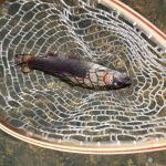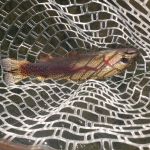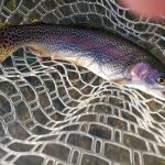 The day started off pretty well with Glenn getting two by the spring using pink San Juan worm.  It then slowed a bit and become hit or miss.  The miss part was because Glenn was really rusty and failed to get several into the net that he should have.   The moral of the story is, get out there and fish!   The morning session was all about pink and white, with success on the San Juan, the Big Hurt, and a white Wooly Bugger.   This was confirmed right after lunch when we spoke to a young lady, who was an avid fly fisherwoman, who indicated her only success was on white and pink.