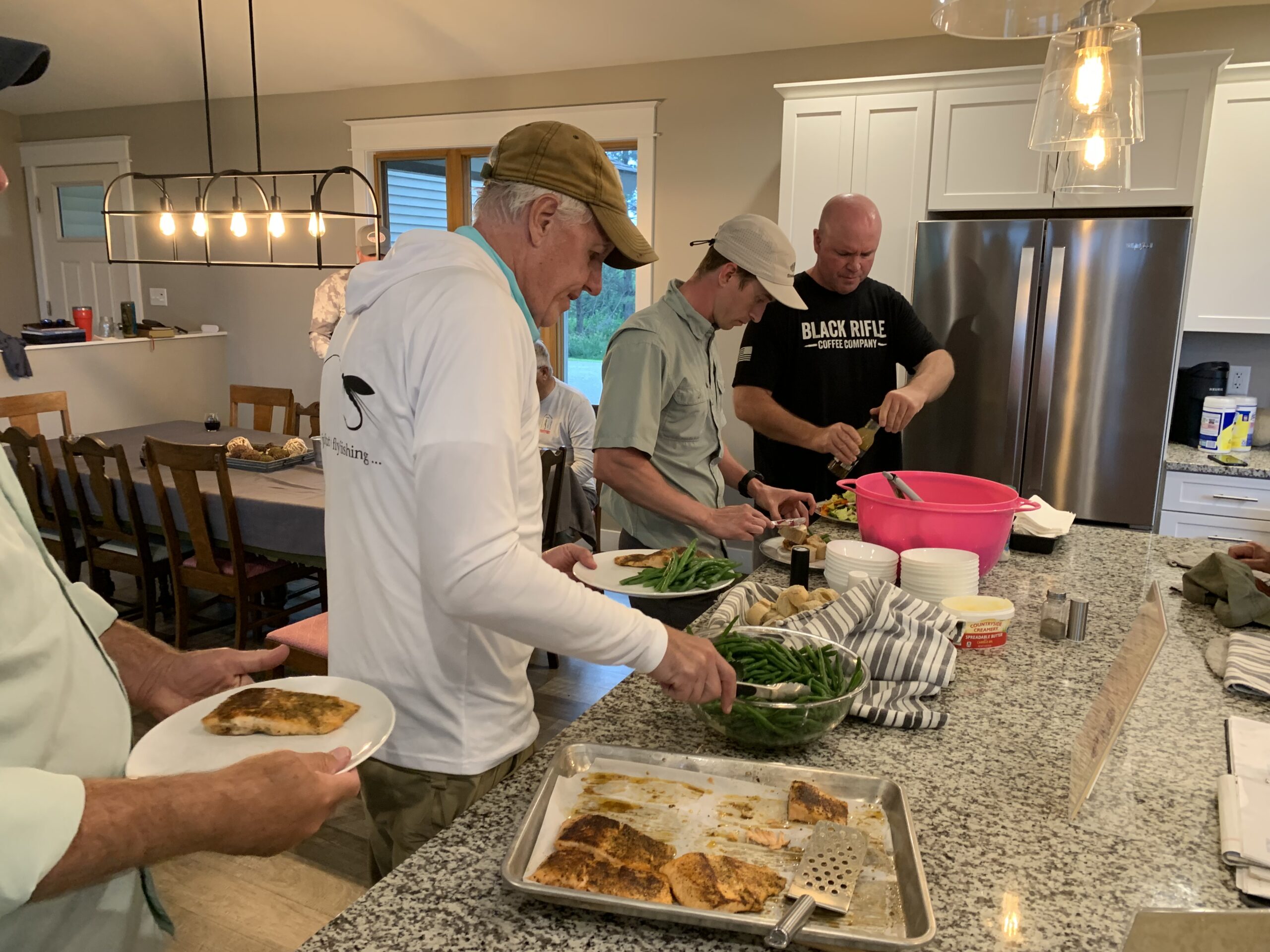 The fly fishing was superb. Our guides did a great job on the water and off. Many tried ESN for the first time and of course, caught a lot of trout. But we also learned and fished with dry flies and dry/droppers. Jason and Eric went around the waters to check on guys and give some amazing instruction. Besides the retreat format we did talk a LOT of fly fishing. I am positive that everyone improved their fly-fishing knowledge just by attending the retreat.