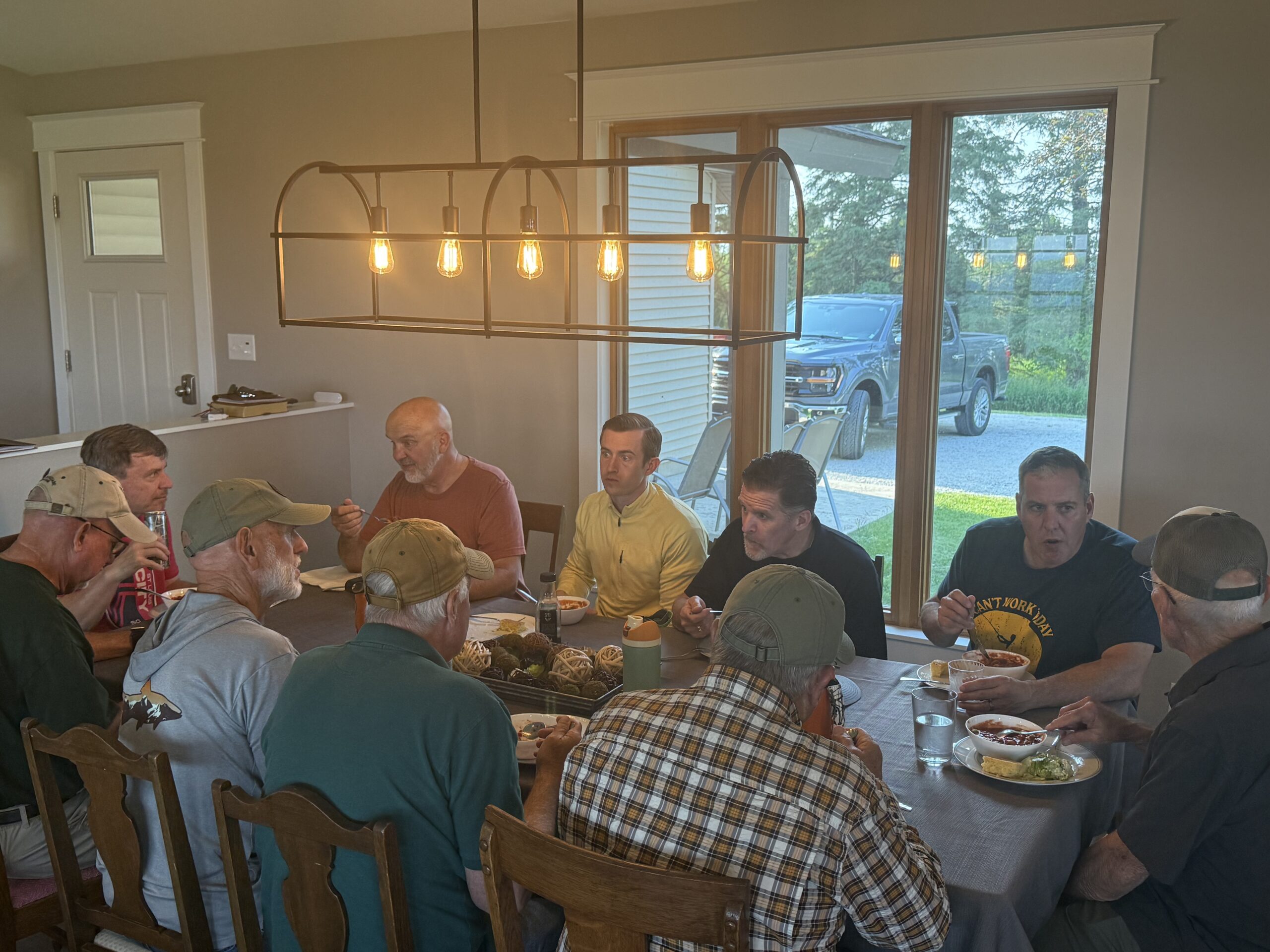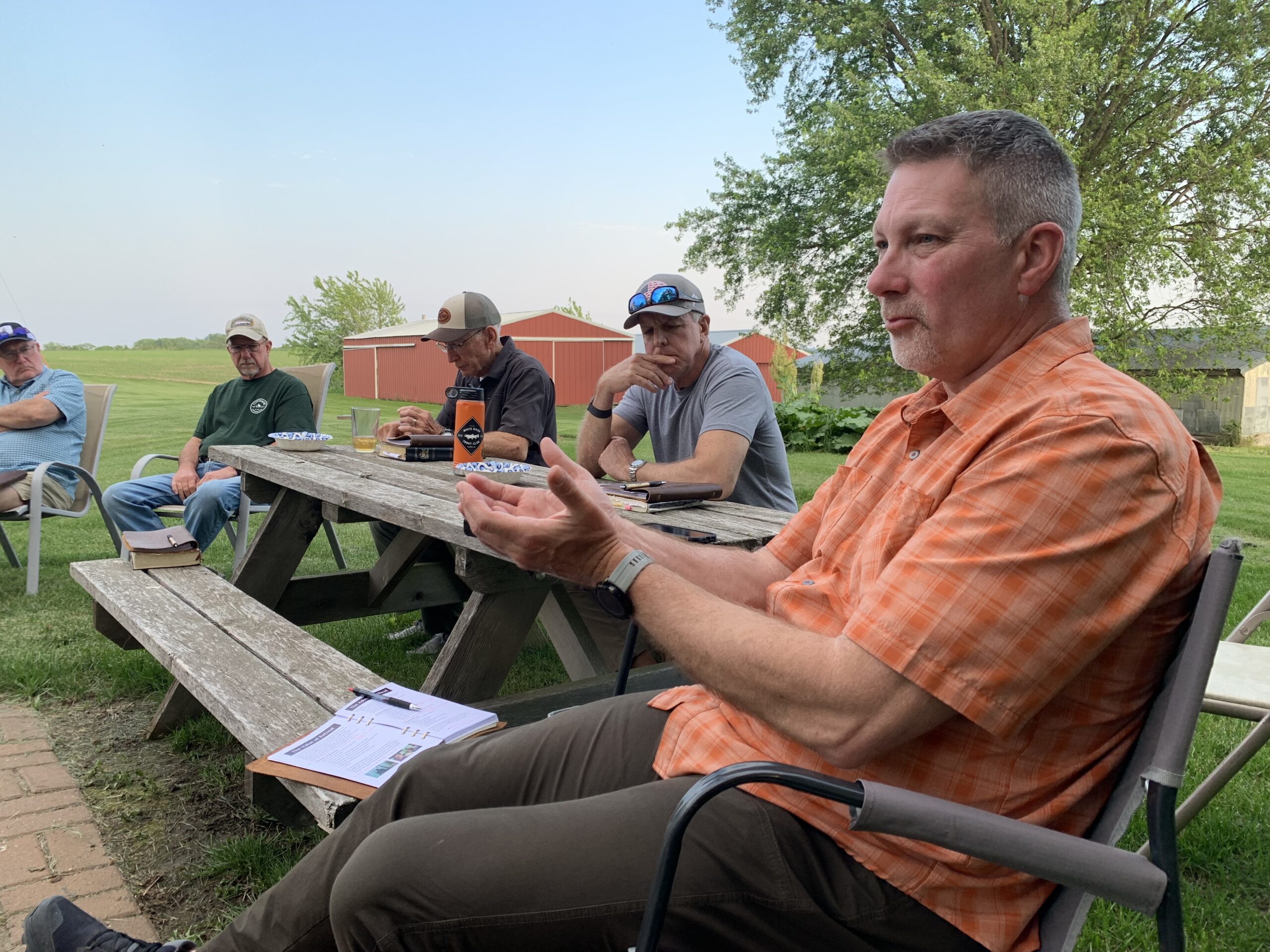 This was the fourth FATC/Altar fly fishing retreat. Each year we send twelve of our men to participate in this experience. Our members that attended this year were Glenn Haake, Denny Garner, Alan Hautly, Bob Born, Tom Strawther (from Houston), Vernon Mansfield, Wes Sebacher, Greg Krochta (from Colorado), Don McCain, Mike Walton, Tony Kalinowski, Scott Dougherty. All attendees arrived on Tuesday afternoon to get their room assignments and enjoy a meet and greet at the “Main House”. The schedule and rhythm for the retreat was similar like years past. We would all meet for breakfast, have a teaching and conversation session, personal reflection, fishing in the driftless area, appetizers and dinner and then close with evening discussion and fellowship.