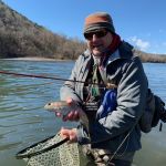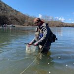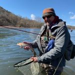 Saturday morning, they hit the water running – the flow was still strong at around 3500cfs and the LT level was at 706 feet. Most fishing was done closer to Andy Williams’ house. Again, midges, buggers, scuds and tiger tails seemed to do the best. Kenny was waiting for the midges to hatch as small foam bubbles were forming in the eddy in front of Andy’s house. If this happens the trout come to the surface and start sipping the midges out of the foam. It didn’t happen but what did happen was the wind. As the wind picked up to 50 mph the casting was close too impossible, and the guys had to retreat to the condo to wait it out. Unfortunately, the Corp started to push more water out of Table Rock Lake and the LT levels rose to 710 feet – too much to be able to fish. The rest of Saturday was shot – no more fishing.