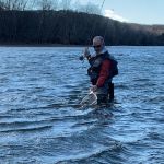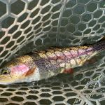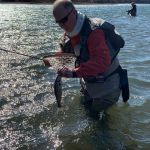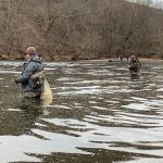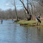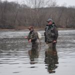 On Sunday, the temperatures turned cold again (did I mention the water temperatures were FREEZING?) but the wind died down and the guys attempted to fish again. Craig and Ken fished for about two hours and had to call it quits and start back for Chicago. Kenny, Ron and Bob continued, and it was a good thing. The trout showed up sipping midges in the foam in the Eddy by Andy’s. Soft hackles went on the line and the catching began again. Finally, after about four hours in the water the three couldn’t feel their legs anymore and it was time to leave.