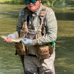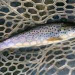The entire group met for lunch at the conservation shack to share stories. A mix of flies caught fish, both on top and near the bottom. After lunch, Al, Harold and Bill headed back to the park, while Kenny and Glenn picked up where they left off at the first 90 degree left below the cable. There were a lot of fish below the cable, which were healthy with beautiful colors. Perdigons, hair of the dog, and hare’s ear nymphs were the ticket, with several in the net. The last fish of the day was Kenny’s jump’n 17 inch brown caught on a blue perdigon. It was beautiful and jumped three times, but still ended up in Kenny’s net.