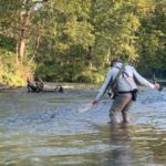 On Friday September 16, Glenn Haake, Kenny Klimes, Bill Byington, Al Blair and Harold Bates headed to the current river to try their luck at Montauk on a beautiful day. When they arrived, they saw a sign indicating that a tournament was taking place Saturday and Sunday. With visions of crowds in their head, Glenn and Kenny headed below the cable. They hit a pool just below the cable that was loaded with fish, each bringing several to the net. Kenny with a Barr’s emerger and Glenn with a Euro rod fishing an orange perdigon and a hare’s ear nymph. (There was a huge hatch when they got there). After a while, Glenn headed down river with Kenny yelling after him “You never leave fish to find fish!”. He was right, not much happened the rest of the morning. Al, Harold and Bill headed up to the park and had mixed results.