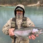 The afternoon continued to be productive. I had the best luck with the Egg/House of Payne fly up by the spring and worked my way down past the gage house trying different flies with limited success. I ended the day with 17 fish. Dan and Vernon fished down toward the handicap piers and continued to bring fish to the net. Dan was able to get 1 on a dry fly and another on a soft hackle 2 on the P&P midge and a couple on the Bennett Spring killer. His total for the day was 21 trout. Scott went down below the dam and bridge and continued dominating. He said there was absolutely zero competition in that area which contributed to his personal best day for trout at 64. With one of those being a 20 inch whiskey I think we all feel like it was worth putting up with the weather for the day that we had, the total fish count was over 100 trout.