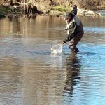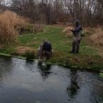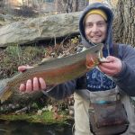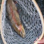 The day was cool and cloudy, chance of rain but it blew over and remained breezy the rest of the day. After checking in with Westover we parked and started gearing up. Mike B, Mike O, and I decided on our Euro Nymphing rods and Jason hit the water with his fly rod. The water was shallow as we tried the creek running through the park first. Mike B landed one and dug it out of the creek with his net, pictures taken and we continued working around the park. Later we walked down to Dry Creek and with the shallow water and the breeze working against us the Euro Nymphing rods were switched out to fly rods. Mike O was able to get one more into the net before the switch. Across the bridge and into another part of Dry Creek and Jason was able to put one in the net, unfortunately all the cameras were in the other direction.