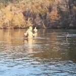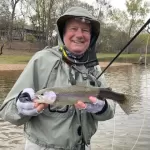 On the third day, Thursday, we decided on a new tactic.  It was time to adapt to the high flow conditions.  We paired up and rented two nice bass boats from Lilly’s Landing.  None of us had ever fly fished from a boat while also trying to control the drift of the boat.  Let’s just say there was a learning curve.  But, the boats had great power for battling the current, and we caught fish.  Our plan for adapting to the conditions put fish in the net using mostly cerise worms and egg patterns.  Kudos to Lilly’s.  They made the rental process easy and they were very good boats.