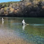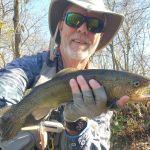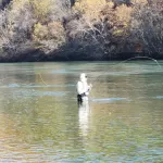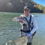 Glenn Haake, Matt McClure, Dan Staggenborg, and I (Jim Craig) arrived in Branson, MO, Tuesday morning, November 12, 2024, with well-stocked fly boxes and high expectations.  We stopped at River Run Outfitters (Carolyn, the owner, is a generous FATC sponsor) to get the latest update on successful flies and hourly flow projections.  Carolyn confirmed our expectations of low flows and we bought just a “few” more flies.
