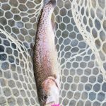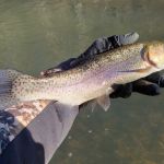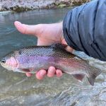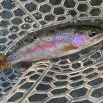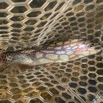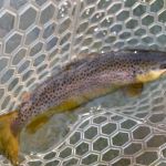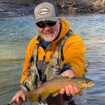 The next morning, Tuesday, we fished outside the park since it was closed. Below the cable and Tan Vat were the targets for the day. We got to see a rare sight that most people have never seen – Frost Flowers. When the temperature in the morning is just right moisture seeps from the bottom of plants and creates a beautiful frost like flower. Check out the pictures if you have never seen this or go to the MDC website and search “frost flowers”. We caught some beautiful butter belly browns early on and thought that something special could happen this day. Even the rainbows we caught were of exceptional colors. Everyone caught fish but Eric did outstanding getting the big fish of the day an 18 ½ inch brown. Of course, Kenny was a gracious host and let Eric have ALL the good water. Most of use did Euro nymphing and many of us lost a bunch of flies on these two days. I hate when those trees appear from nowhere.