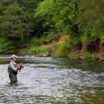 Kenny, John and Pete decided to fish outside the park and check out the waters there. They started the morning at Tan Vat with Pete directing John and Kenny for banner pictures. Hopefully the photo shots won’t shown our ugly mugs. The fishing was good for some of us 😉 And the “new” Hair of the Dog fly was a killer netting well over 10 trout, both browns and rainbows. The water outside the park is also low and clear which means you have to be on your game. No room for error or sloppiness. The three met up with Mike, Jacob, Sid in the park (only Vernon was MIA) for lunch. After lunch Kenny, John and Pete decided to fish below the cable which was good but the temps were hot and made the cool water more enjoyable. They quit early, around 3pm, because Pete had another engagement at home. So John and Kenny had their fellowship dinner at the Big Chief restaurant in Wildwood – never been there? It’s a must (their lasagna is to die for – doesn’t even look like lasagna!!).