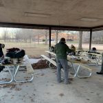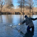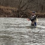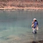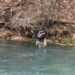 Jim, Kenny, Sterling, Glenn, Mike and Bob headed outside the park first thing in the morning to check out how the Meramec river was fishing, while the rest stayed in the park to work that area. For the guys outside the park the fishing was good for “outside the park”. Between the six guys around 15 fish were in the net with more missed. Most were browns with a few rainbows and small mouth bass thrown in. They fished outside until about 11am and headed by to the park for lunch. The guys inside the park said they did very well before the noon lunch hour.