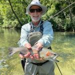 Most everyone had differing plans for the trip.  Scott Payne and Harold Bates met at the Commuter lot at 5:30 am and were at the park around 7:30.  After buying their tags and getting ready to fish they find out that Don Varner was at the stream by 7am.  Don drove down by himself because he had plans to leave early afternoon on Thursday in order to watch the Cardinals get beat by the Mets.  WHY?  Dan Staggenborg also drove alone with plans to stop by his RV at Montauk on the way home  Thursday, Vernon Preston and myself (Steve Baker) left St. Louis about 10:30 after my 9:30 Dr. appointment.  We didn’t arrive at Bennett till after 2pm and by the time we started fishing it was almost 3.  The group was also joined for the day by Tim Klotz and Bob Hassett  I didn’t see much of them since they took off about 5pm, so I have no idea of how their day went.