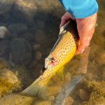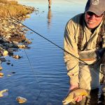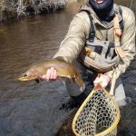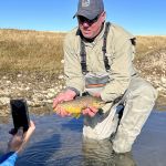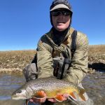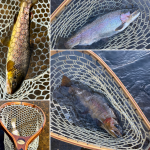 We all set out on the first day to fish the beautiful Eleven Mile Canyon.  Flows were on the low side which made fishing a little challenging however we all were able to land a few cutbows and rainbows.  Fishing was tough and technical.  Size 18 to 22 nymphs were the ticket.  The second day was scheduled where Mike B  & Matt were to fish with Landon on Antero Reservoir in anticipation of catching pre-spawn trout cruising the shallow shoreline and Mike O and Dan S headed to the Night Hawk section of the South Platte located not far from Deckers, CO.   Unfortunately we had to call an audible as Landon (our guide) hit a deer and was subsequently rear- ended by another driver on his way to meet us. Thanks be to God that nobody was hurt.  So Mike and Matt called an audible to check out the Dream Stream knowing that we would also be able to move onto Eleven Mile Canyon if necessary.  Flows were very low in the Dream with a sizable amount of moss. Due to the inlet of Eleven Mile Reservoir being substantially silted due to flooding it has created a big problem for the Kokanee and Browns to migrate up the stream to spawn.  In fact very few fish had migrated.  Mike B was able to land his first Dream Stream trout but that is all we landed.  After several hours we headed onto Eleven Mile where the pace picked up.  Matt made a decision to tie on a Fruit Roll-up streamer and immediately had some nice action netting 5 quality fish in a very short time.  Mike B headed down the river using the same.  Many hits and several on but challenging to net.  Mike O and Dan ended up netting several trout in the Deckers area but reported that it was tough fishing.  The South Platte is known as one of the most challenging and technical rivers in the US so catching just a few can be a rewarding experience.  One thing is for sure no matter what section of the South Platte you fish it is hard to find more beautiful scenery.