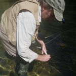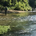 With an awesome weather day forecast a BIG group of FATC guys hit the the Current river at Montauk on this Friday. Eight men (Mike Oldani, Brian Yost, Barry Dunnegan, Bill Byington, Jim Craig, Time Welsch, Glenn Haake and Kenny Klimes) took the trip and weren’t disappointed. The fishing was good and the fellowship even better. The gang fished in Montauk park on this day. Still a little crowded with school not in session but give it one more week and the crowds will slowly die down. The water in the park is low as are most rivers in Missouri right now. The water is super clear so it seemed that the smaller the flies the better on this day. The consensus was that the best fishing took place in the faster moving water so look for the riffles and runs no matter how shallow they may seem. The fish are loaded in the park – you just have to figure out what they want BUT remember the correct presentation, depth and weight used are very important.