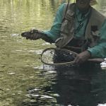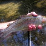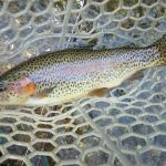 A myriad of flies did well but those that leaned towards the smaller size seemed the best. Midges, nymphs, small san juan worms, ants/beetles, soft hackles, pheasant tails, RS2s and a few others worked the best. Even dead drifting a woolybugger under an indicator brought in some fish. Light tippet and fluorocarbon tippet is needed with the water so clear. The group fished only in the fly only area running from the top to the bottom in the morning and then again in the afternoon.