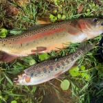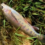 But the rewards of landing some of these beautiful fish are great.  Their average size doesn’t always match those of the hatchery fish but their markings are really unique.  In some creeks the McCloud strain of rainbows many of us have heard or read about can still be caught.  And sometimes — for instance when the creeks swell with rainwater runoff diminishing their natural spookiness — truly large fish can be landed; but usually only after some real effort (and the aforementioned luck) has been added.